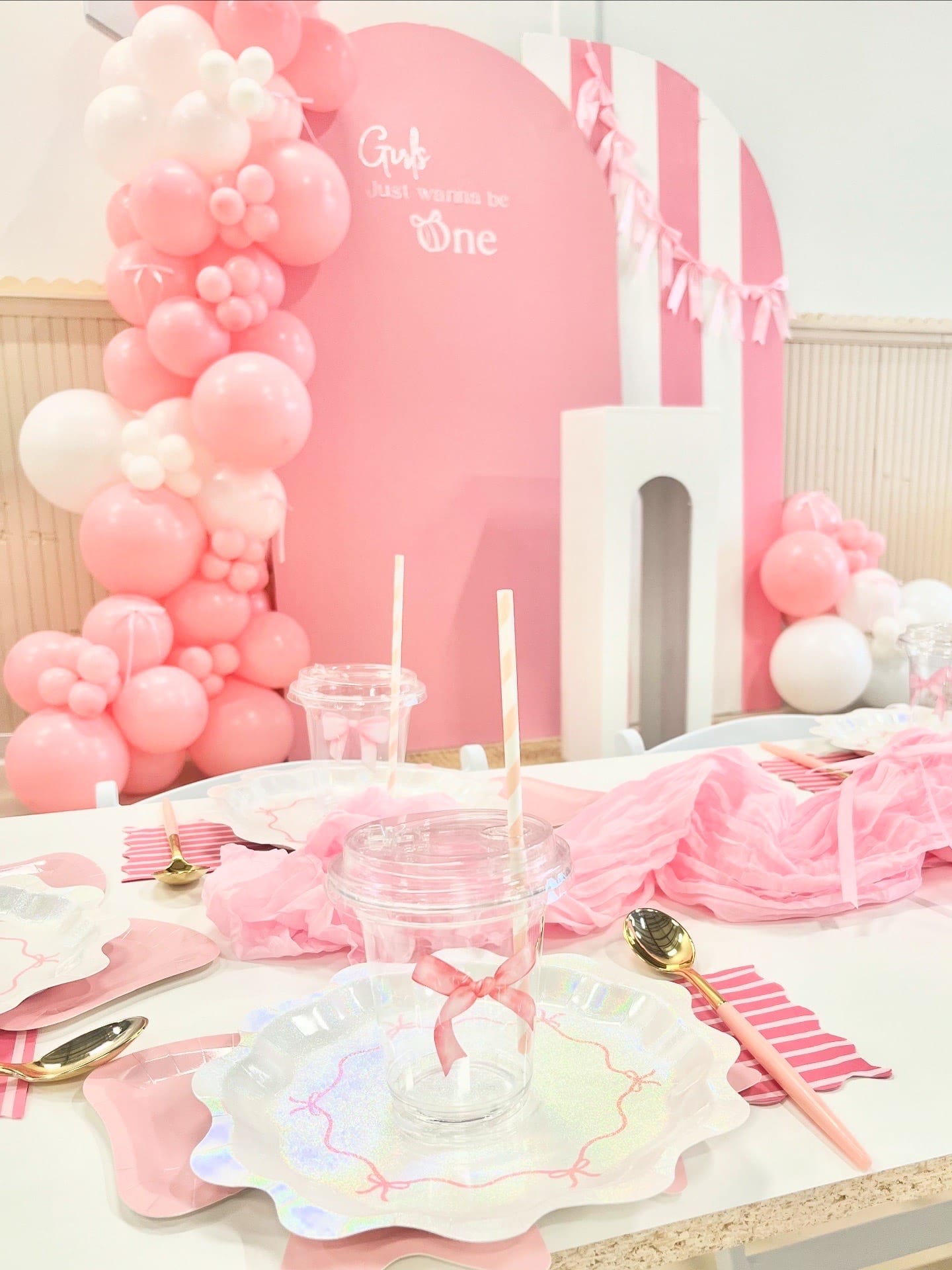 2 backdrops with custom vinyl & balloons