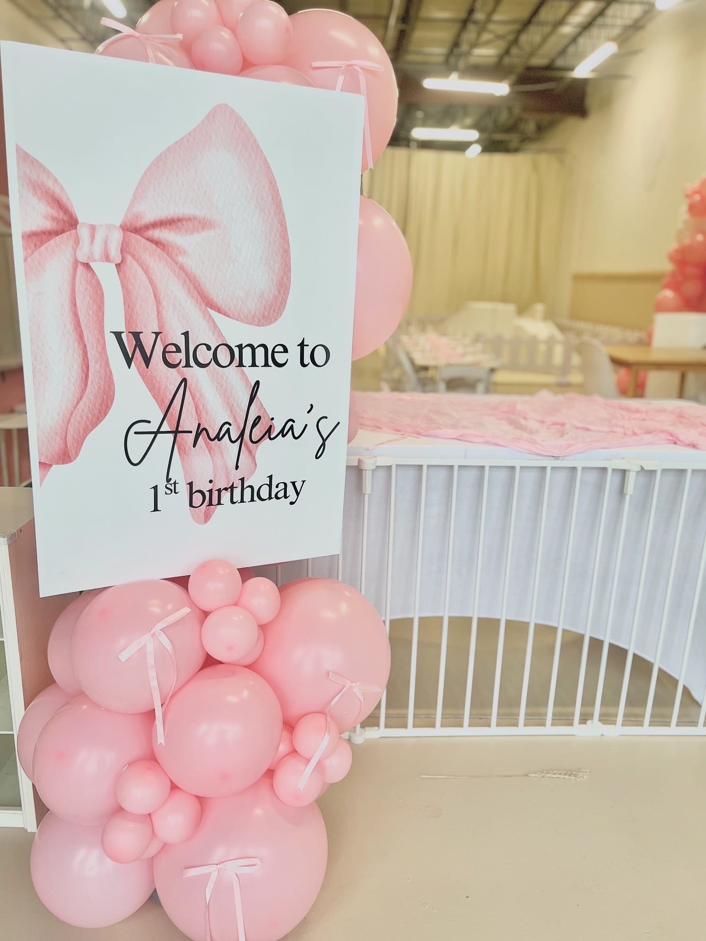Custom welcome sign at entrance with balloons