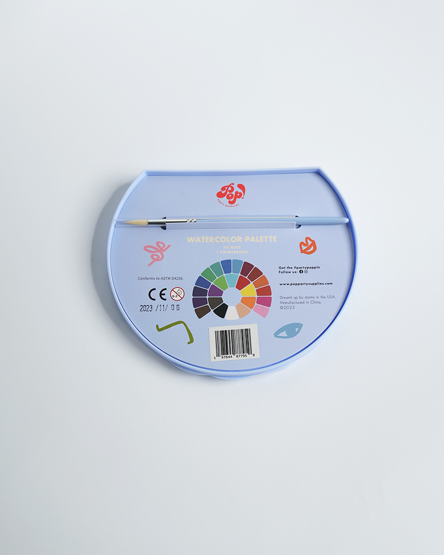 Unlock your inner artist with Art Party Watercolor Palettes! Our unique circle palette features 24 hues, so you've got every hue of the rainbow at your fingertips. Perfect for all ages and effortlessly cleanable, this set is a must-have for your next art party! 🎨 🎉