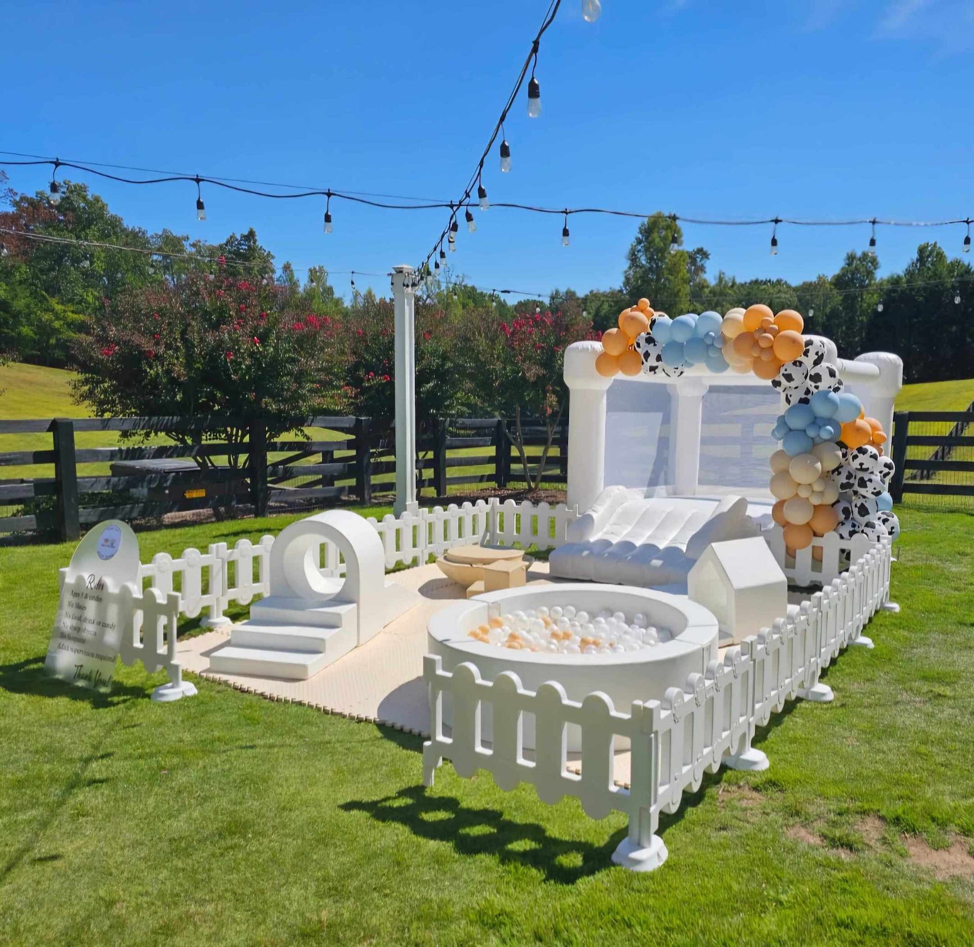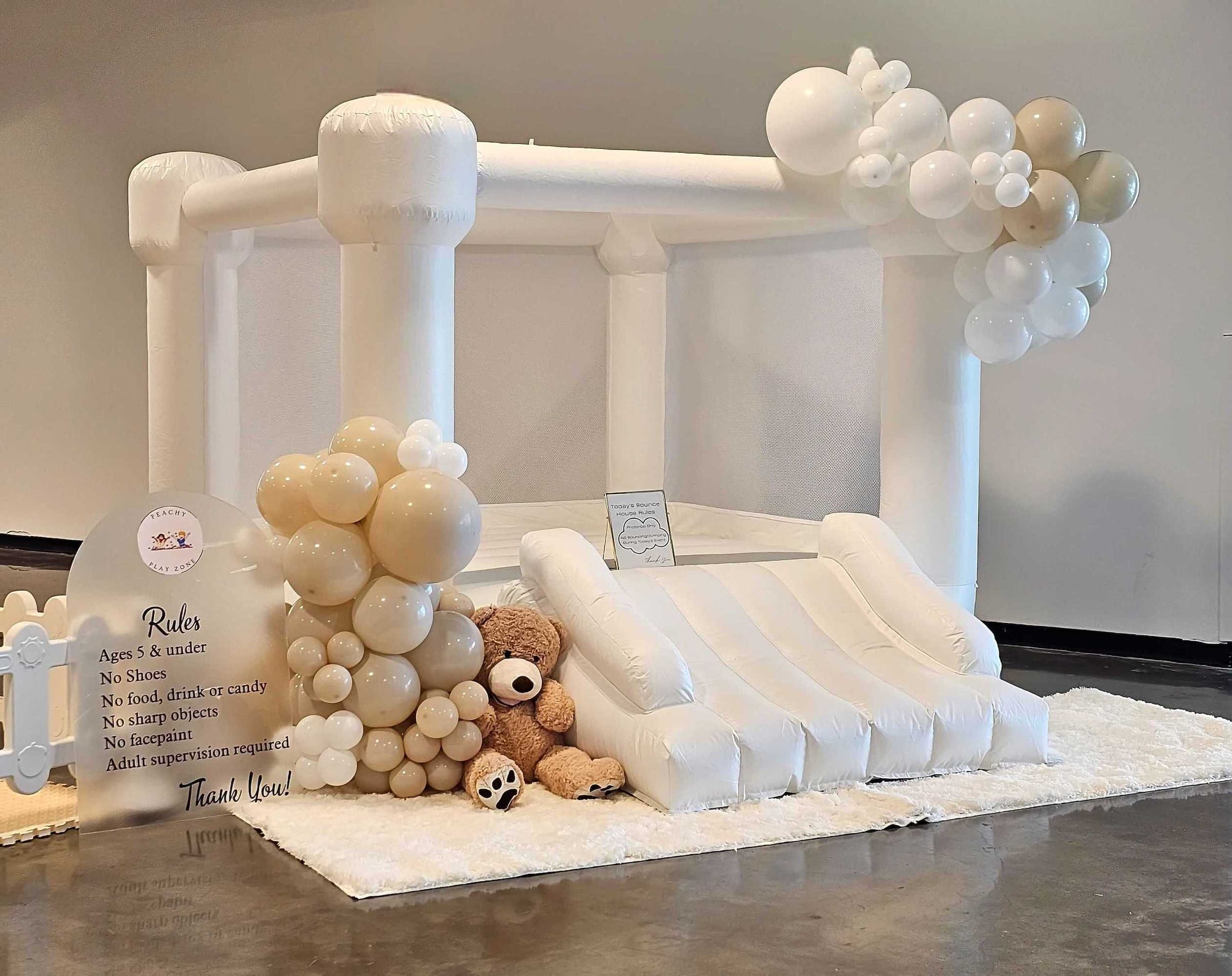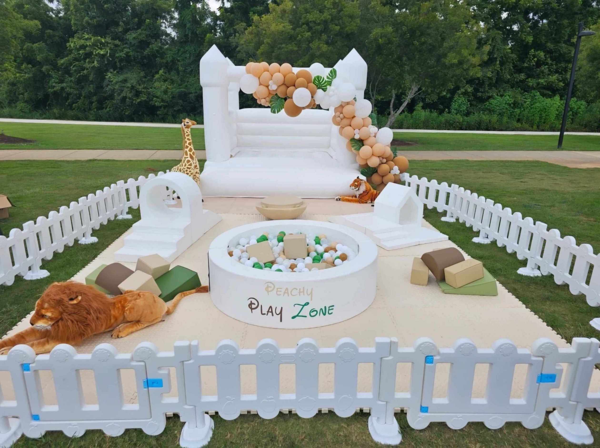 Peachy Play Zone specializes in soft play setups, white bounce houses, ball pits, balloon garlands, and stylish backdrops—ideal for birthdays, celebrations, and gatherings. Our goal is to bring a perfect blend of luxury and fun to your indoor or outdoor events with fully customizable play zones.