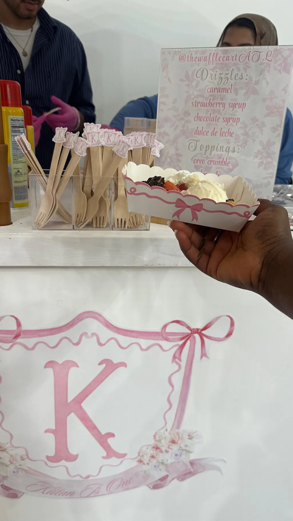 Rida and the the waffle cart were such a hit at my daughter's 1st birthday! From the custom forks to the beautiful cart design, every detail was done with so much care and creativity and in line with our Bowtiful One theme. She even gave us an ice cream option that our guests absolutely loved. Everything looked amazing and tasted so good. Highly recommend for anyone wanting to add a fun, dessert option to their event.